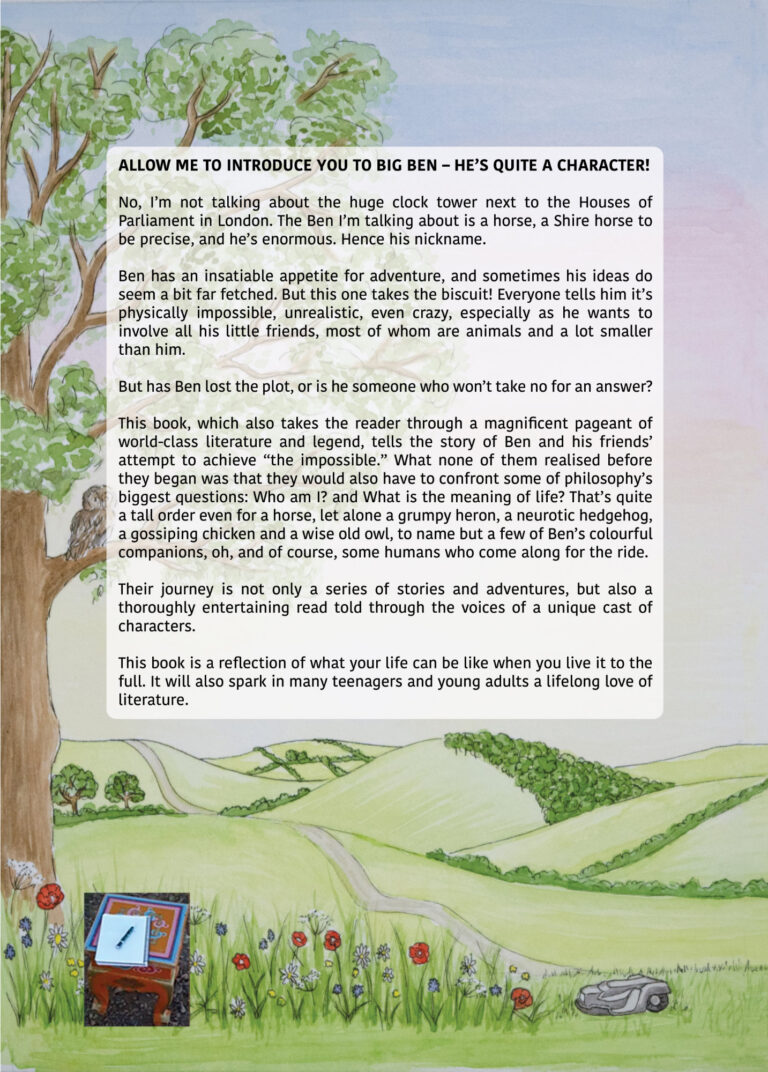Meet Barney the wise old owl, whose knowledge knows no bounds, talkative Hetty Hen and neurotic Helen Hedgehog, the Parish gossips, Harry the irritable heron, and countless other delightful characters, including Ben and Esmerelda, our two Shire horse heroes, in this timeless and heart warming story of how two wonderful animals finally found enduring happiness.